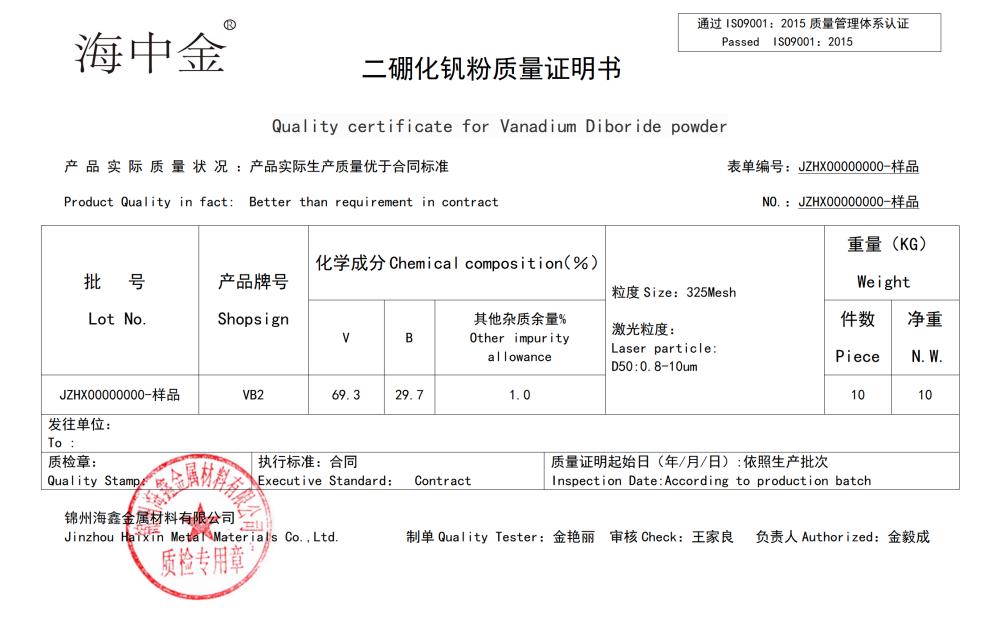 產(chǎn)品名稱:二硼化釩(VB2)