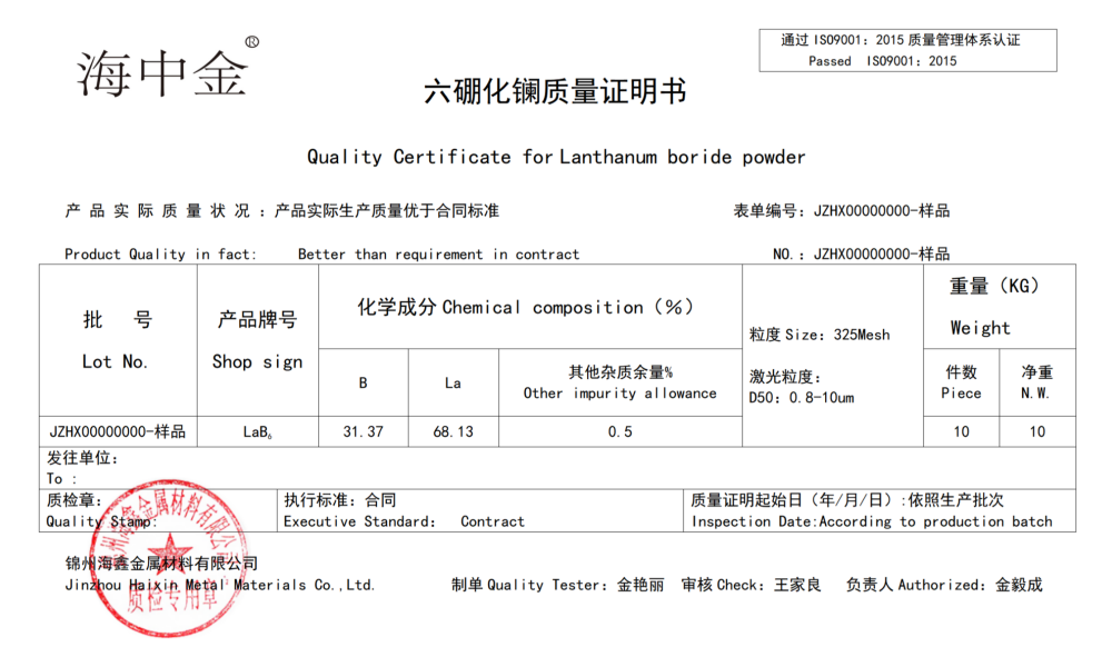 產(chǎn)品名稱:六硼化鑭(LaB6)