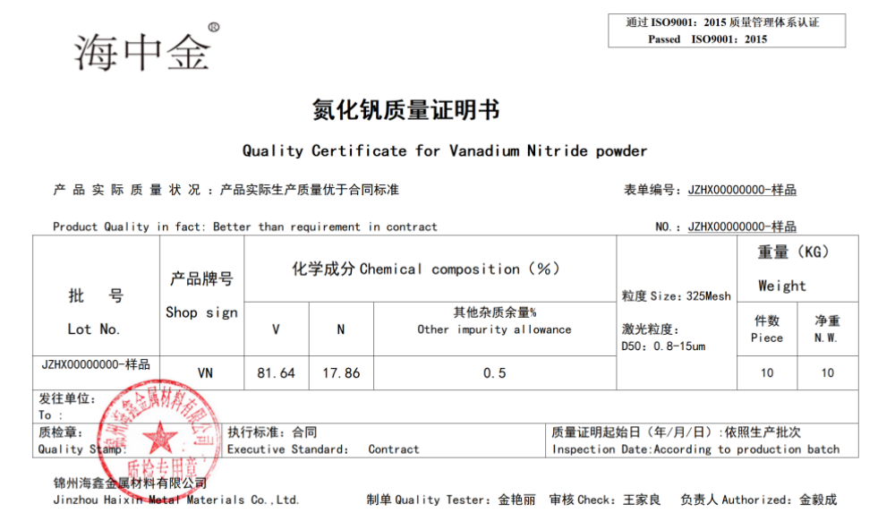 產(chǎn)品名稱:氮化釩(VN)