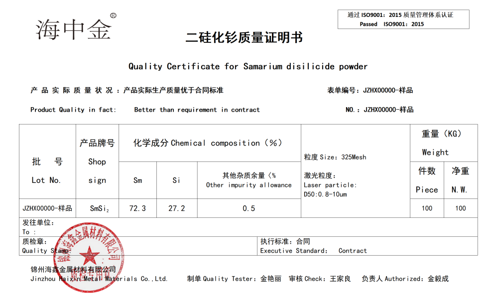 產(chǎn)品名稱:二硅化釤(SmSi2